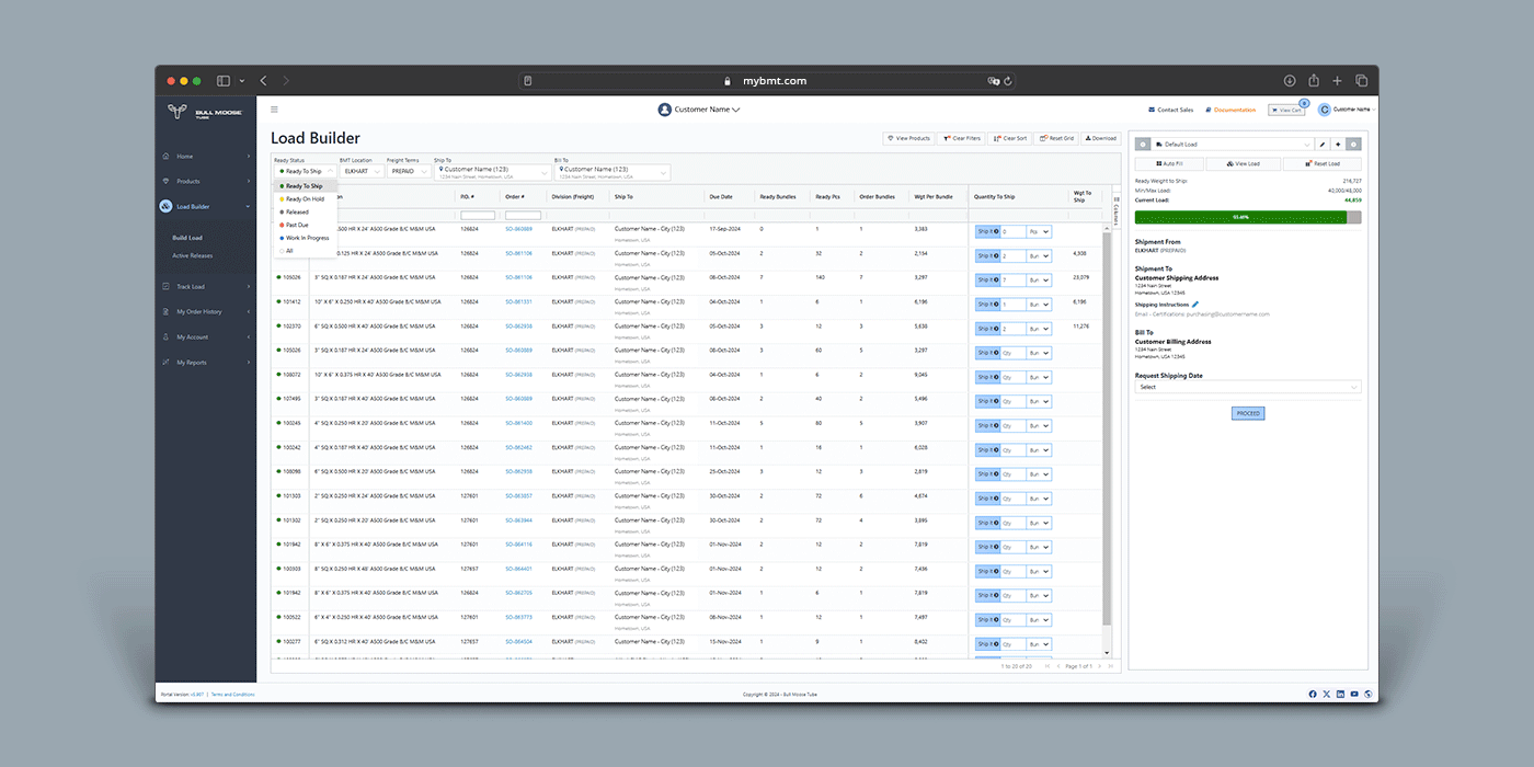 You’ll discover that our new portal gives you instant access to essential information ranging from availability and rolling schedules to manufacturing locations and shipping status. Designed for day-to-day usability, this system makes it easy to search for multiple items simultaneously, build loads, and even sort by your own part numbers.